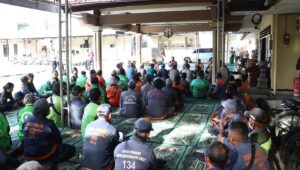 Kegiatan yang berlangsung dalam suasana hangat dan penuh keakraban tersebut diikuti oleh total 100 orang, terdiri dari 30 juru parkir, 40 pengemudi ojek online, dan 30 tukang becak yang sehari-hari beraktivitas di wilayah Kota Mojokerto.