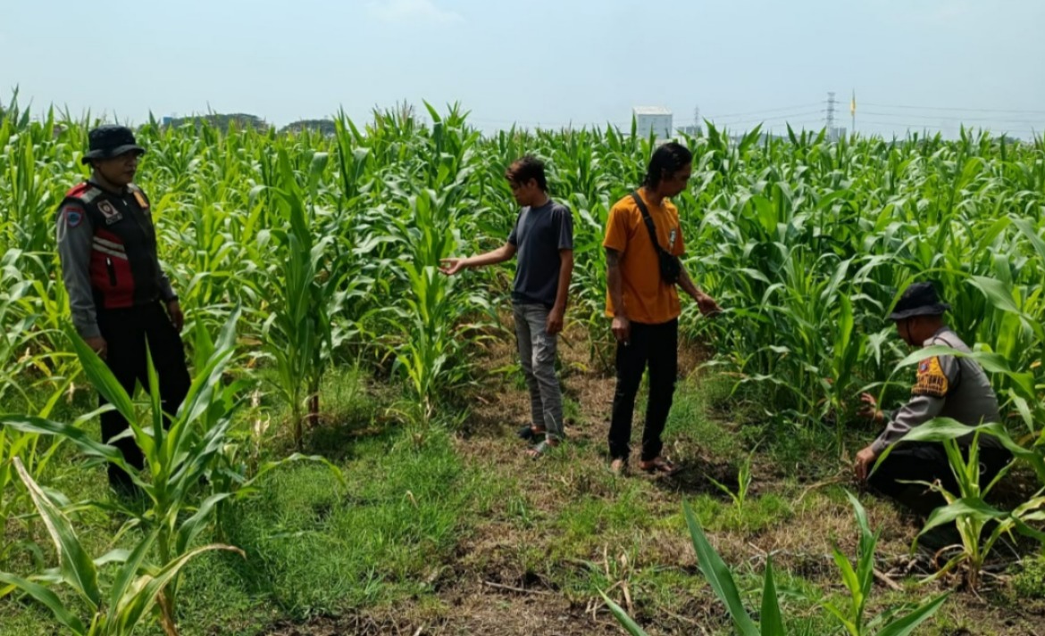 Kanit Binmas Polsek Krembung Aiptu Adin menjelaskan bahwa kegiatan pengecekan dilakukan secara berkala untuk memastikan tanaman jagung tumbuh optimal.